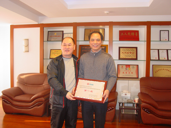 北京萬科領導親赴北京公司授牌 時間:2010-12-14 5544 北京公司在萬科地產第三季度萬科北京區域在建項目產品質量評估中,萬科藍山項目經專家現場實測實量,390個點合格率為99.39%,觀感質量評分、質量風險評估綜合得分97.35%,項目綜合排名蟬聯第一。12月12日上午,北京萬科副總經理孔祥明率工程部經理、項目總經理等一行,特地趕到我公司,把第一名的獎牌隆重授予我公司陳榮春總經理。陳總對萬科的肯定和信任表示感謝,并期望雙方進一步加強友好合作,永續真誠友誼。