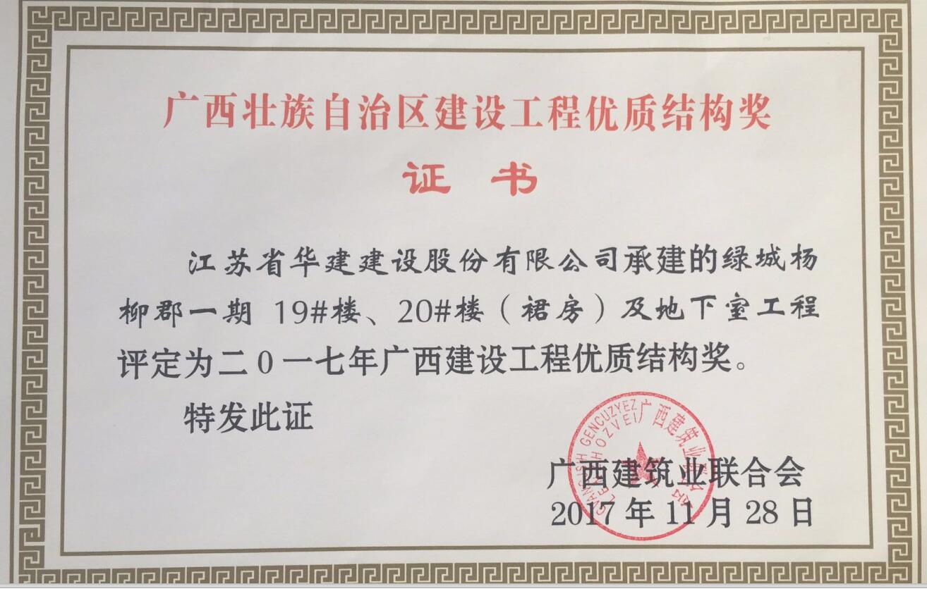 北京公司2項工程獲廣西區優質結構工程獎 時間:2017-12-26 3287 近期從廣西建筑業聯合會獲悉,我公司總承包施工的廣西自治區柳州市“綠城楊柳郡一期19#、20#樓(裙房)及地下室工程”和“綠城楊柳郡一期15#樓及地下室工程”兩項工程被評定為二0一七年廣西建設工程優質結構獎,這也是北京區域公司在廣西自治區獲獎的第一個項目。 該項目開工之初就明確了爭創廣西自治區優質工程的目標,在施工中,項目部注重實體結構質量,勇于技術創新,在北京區域公司內率先使用鋁模板施工工藝,在建設單位組織的第三方多次檢測也均取得了較好的成績。