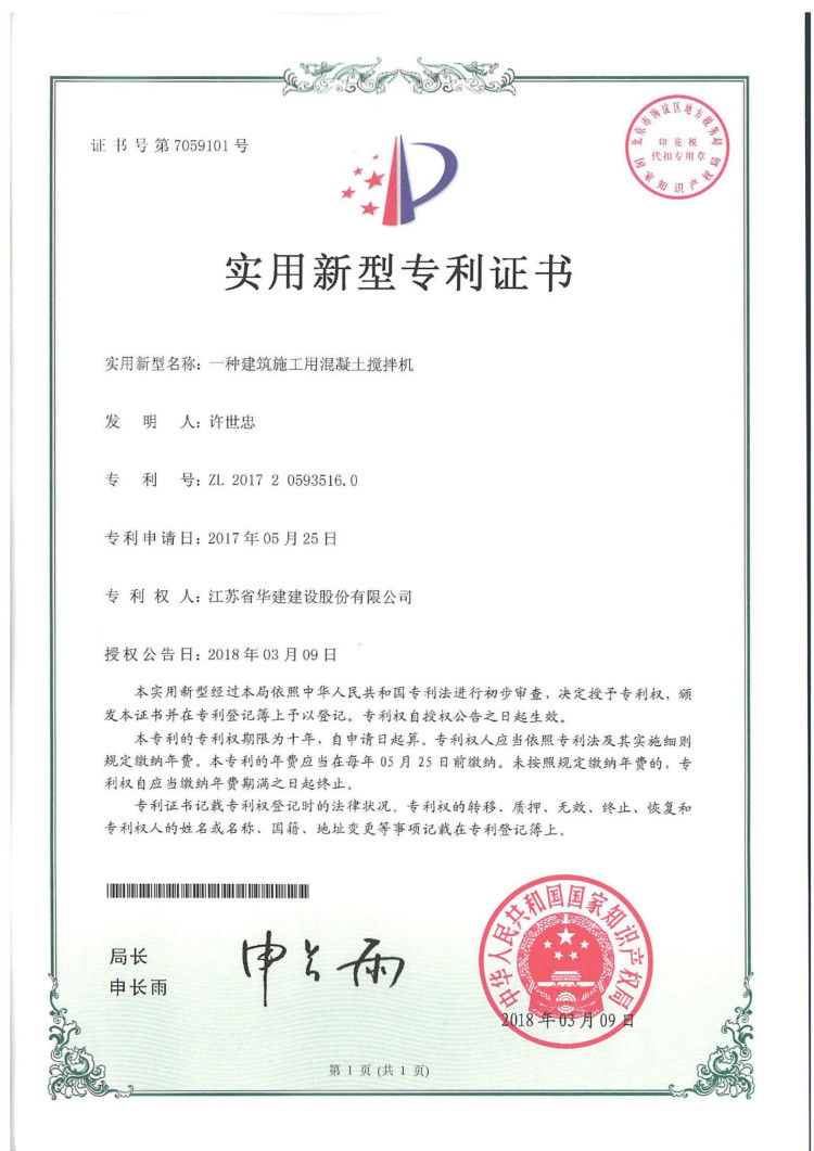 江蘇華建再獲1項發明專利、3項實用新型專利 時間:2018-06-06 3308 日前,從國家知識產權局傳來喜訊,江蘇華建上海區域公司發布的《一種用于砌體結構墻體后開洞的夾緊梁裝置及其施工方法》獲得發明專利授權(專利號:ZL201610262053.X),《一種建筑板材角磨機》(專利號:ZL201720592798.2 )、《一種建筑施工用鋼筋切斷機》(專利號:ZL201720593659.1 )、《一種建筑施工用混凝土攪拌機》(專利號:ZL201720593516.0 )獲得實用新型專利授權。