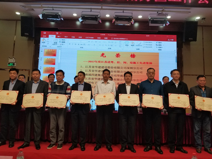惠州公司獲評“2017年度江蘇出省施工先進集體” 時間:2018-03-26 3547 3月24日,2018年度江蘇建筑業南方區工作會議在深圳召開,會議表彰了一批江蘇出省施工先進集體及先進個人。惠州公司被江蘇省住房和城鄉建設廳評為“2017年度江蘇出省施工先進集體”,總經理周群利、技術處主任陳申高被江蘇省住房和城鄉建設廳評為“2017年度江蘇出省施工先進個人”;史泰龍、孔祥明、王興東分別被江蘇省人民政府駐深圳(廣州)辦事處表彰為2017年度江蘇進粵、桂、閩、瓊施工質量安全、經營財務和新聞報道先進個人。