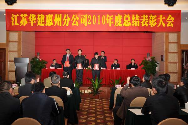 大會由惠州公司副總經理嚴龍山同志主持,惠州公司總經理華恒榮同志在會上作了題為《保穩定促規范,強化管理謀發展;勇開拓重創新,奮勇進取譜新篇》的工作報告。報告對惠州公司2010年各項工作和成果進行了客觀、全面、深刻的總結與回顧。報告認為,去年以來,面對深刻變化的國際國內環境,競爭激烈的建筑市場,在公司總部的堅強領導下,惠州公司堅持“保穩定、防風險、創品牌、促發展”的工作方針,全體員工團結一心,克難求進,順利完成了總部年初下達的任務指標,精神文明建設再結碩果;工程創優技術進步取得新突破;各工程處(項目部)呈現頗多亮點。盤點2010年,是濃墨重彩的一年,更是惠州公司發展史上不平凡的一年,全年著力于“穩”,彰顯出“新”,構建 成“和”,在經營開拓、質量安全、風險管控、內部管理等各個方面都取得了實實在在的工作業績。報告還對工作中存在的問題和困難逐一梳理,并按照江蘇華建董事會五屆一次、二次會議精神,結合惠州實際,對2011年度工作提出了工作意見,要求惠州公司上下繼續發揚“敢拼、敢干、敢冒”的創業精神,努力光大經營特色,繼往開來,不斷進取,圍繞“平穩、規范、創新、拓展”的工作方針開展工作:繼續加強經營開拓力度,提高經營實效,確保規模增長;繼續加強現場施工管理,提升管理水平,推動創新創優;繼續加強風險監管控制,細化財務工作,保持平穩發展;繼續加強內部管理規范,探尋共同價值,打造和諧企業。