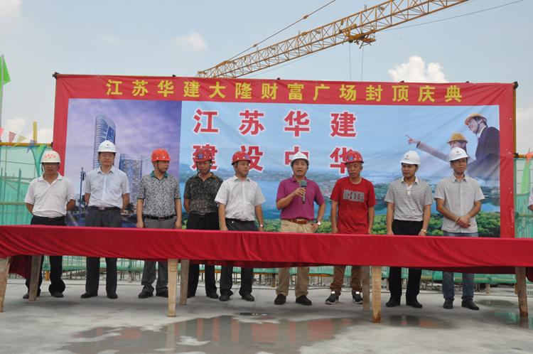 大隆企業集團董事長李坤對該工程封頂表示熱烈祝賀,同時對江蘇華建前階段工作作了充分肯定,對現場工程質量、安全生產、文明施工管理、目前施工進度非常滿意。江蘇華建機具設備處技術負責人張武軍在發言中表示:封頂只是取得階段性成果,下階段江蘇華建將繼續秉承“追求卓越,鑄造精品”的一貫理念,發揚精益求精、一絲不茍的工作作風,切實組織好下階段的施工,為社會、為業主奉獻精品。