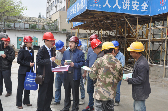 3月20日,惠州市社保局組織工作人員深入公司承建的寶晟城項目施工現(xiàn)場,面對面為建筑工人宣傳工傷保險政策。此次活動由市社保局副局長黃漢榜帶隊。