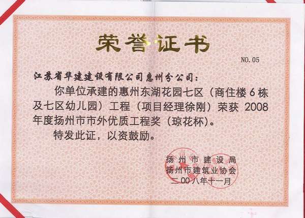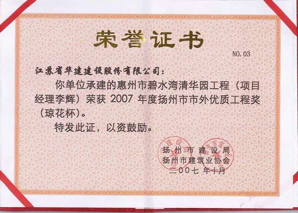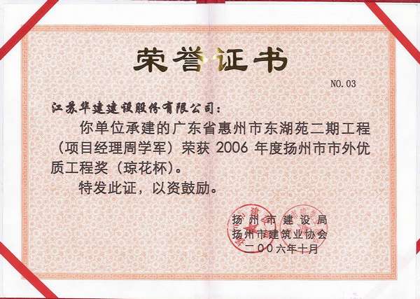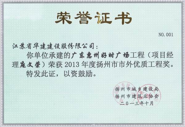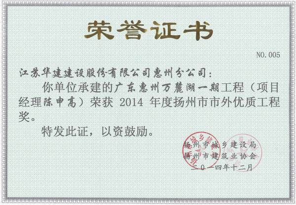 2015年揚州市市外優(yōu)質(zhì)工程獎