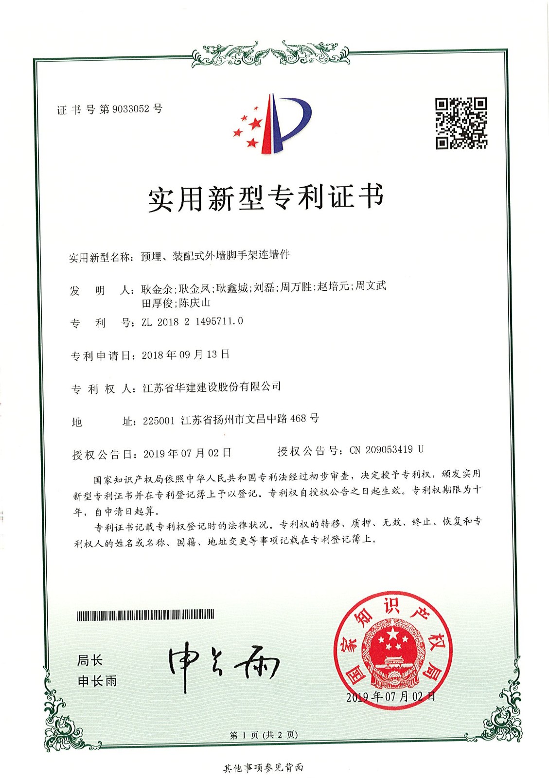 實用新型專利(預埋、裝配式外墻腳手架連墻件)