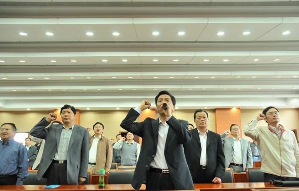 揚(yáng)州建工控股系統(tǒng)組織黨員干部到揚(yáng)州市警示教育基地參觀接受教育 時(shí)間:2011-05-27 5382 5月27日上午,建工控股公司機(jī)關(guān)、華建總部黨員干部和揚(yáng)建、揚(yáng)安、華宏、中專校等單位領(lǐng)導(dǎo)班子成員及黨務(wù)、紀(jì)檢、財(cái)務(wù)、行政等部門中層負(fù)責(zé)人共80多人,到揚(yáng)州市警示教育基地參觀接受教育,大家觀看了預(yù)防腐敗警示教育宣傳圖片、電視專題片和違法犯罪人員現(xiàn)身說法錄像。建控公司黨委書記、董事長陸金龍?jiān)趨⒂^結(jié)束前作了誡勉講話,指出這次建控系統(tǒng)組織黨員干部開展廉潔自律警示教育活動(dòng),是加強(qiáng)干部能力作風(fēng)建設(shè)的一項(xiàng)重要內(nèi)容。一系列反面案例帶來的教訓(xùn)和思考,令大家深受觸動(dòng)。見不賢而內(nèi)自省。建控系統(tǒng)廣大黨員干部要從確立正確的角色定位、樹立合理的人生追求、建立完善的制度保障、打造健康的從業(yè)環(huán)境四個(gè)方面入手,進(jìn)一步加強(qiáng)廉政教育、樹立自律意識(shí)、保持清廉本色,從而提高干事業(yè)、謀發(fā)展的能力和水平,為創(chuàng)建“三個(gè)揚(yáng)州”、建設(shè)和諧社會(huì)作出應(yīng)有貢獻(xiàn)。最后,陸金龍同志帶領(lǐng)大家集體進(jìn)行了莊嚴(yán)的廉政承諾宣誓。