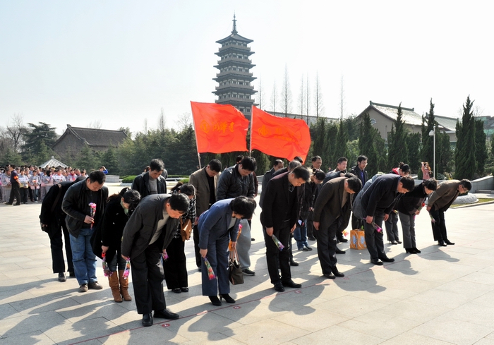 總部黨團組織祭掃烈士陵園 時間:2012-04-01 4818 4月1日下午,公司總部機關黨支部、團委組織機關黨團員和入黨積極分子前往揚州烈士陵園開展清明祭掃活動。在沉重舒緩的哀樂聲中,大家向革命烈士默哀并敬獻了挽聯和鮮花,緬懷那些為了國家獨立、民族解放和社會主義現代化建設獻出寶貴生命的革命先烈,表達了用實際行動慰藉革命烈士、建設偉大祖國、實現民族復興的堅定決心。公司黨委委員、紀委書記錢啟明參加了活動。