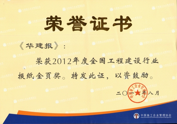 《華建報》連續三年榮獲“金頁獎” 時間:2012-08-14 4545 8月9日,中施企協發布《關于表彰2012年度全國工程建設行業“金頁”報刊和“銀頁”報刊的決定》,公司主辦的《華建報》連續第三年被評為全國工程建設行業 “金頁”報刊。《華建報》創刊五年來,積極發揮窗口作用、平臺作用,以反映公司在技術創新、管理創新、體制創新和市場開拓等方面的新動態、新經驗和新成果為主要內容,在宣傳企業形象、凝聚員工精神、塑造企業文化和促進行業交流等方面起到了積極顯著作用,受到社會各界好評。