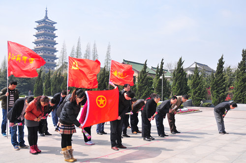總部開展祭掃革命烈士墓活動 時間:2013-04-03 4726 4月3日,總部機關黨支部和團委聯合開展祭掃革命烈士墓活動,總部機關、華建置業20余名同志參加。紀委副書記、黨辦主任陳緒寶主持活動,副總經理兼總工程師程杰帶領大家向烈士紀念碑三鞠躬,并敬獻了鮮花,隨后大家共同參觀了烈士英雄事跡展。