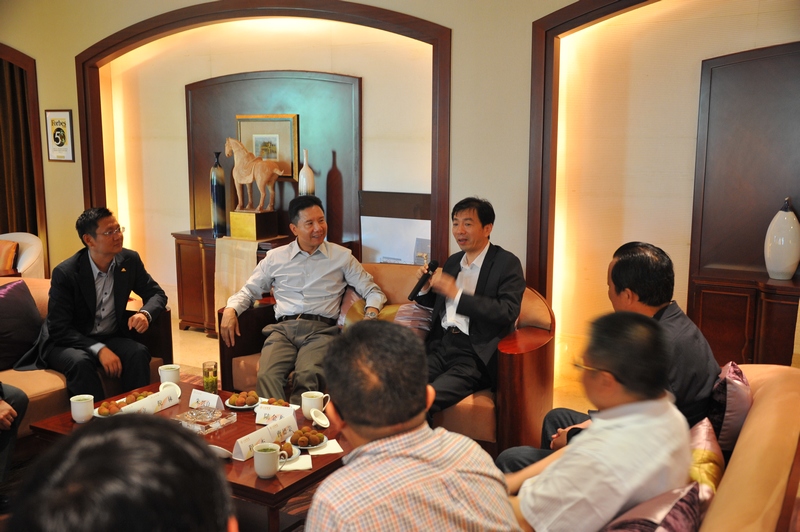 6月6日上午,陸金龍董事長一行赴上市公司蘇州金螳螂考察交流。曹德榮、程杰、陸俊等公司高管參加考察。