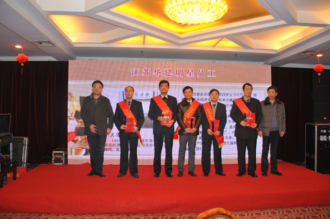 表彰會上,公司對2013年度表現突出的個人和團隊進行了表彰, 34位員工獲評“優秀員工”稱號,朱靖、呂進、嚴正濤、朱旭生、陳明等5同志被表彰為“明星員工”,華建地產運河城市廣場項目團隊和江蘇華建成都分公司團隊被表彰為“突出貢獻團隊”。