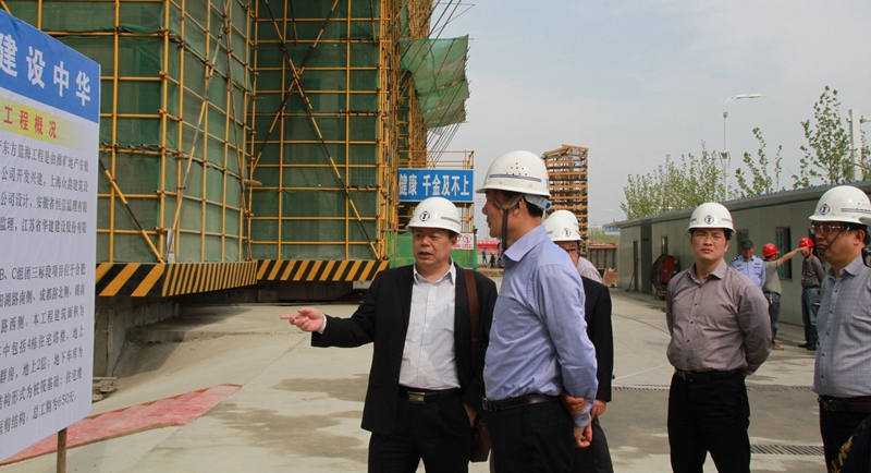 聞道才副市長赴安徽分公司視察東方藍海項目 時間:2014-04-11 3694 4月10日下午,揚州市副市長聞道才一行赴安徽分公司視察了合肥東方藍海B、C組團三標段項目。公司副總經理陸俊、副總經理、惠州公司總經理華恒榮陪同參加。 在項目現場華恒榮副總經理向來訪領導簡要介紹了江蘇華建在安徽市場的發展戰略及東方藍海B、C組團三標段項目的施工情況。聞市長對施工現場、施工組織非常滿意,并再三強調要抓好安全工作,爭創優質工程,為揚州建筑業在安徽市場的發展做出積極貢獻。