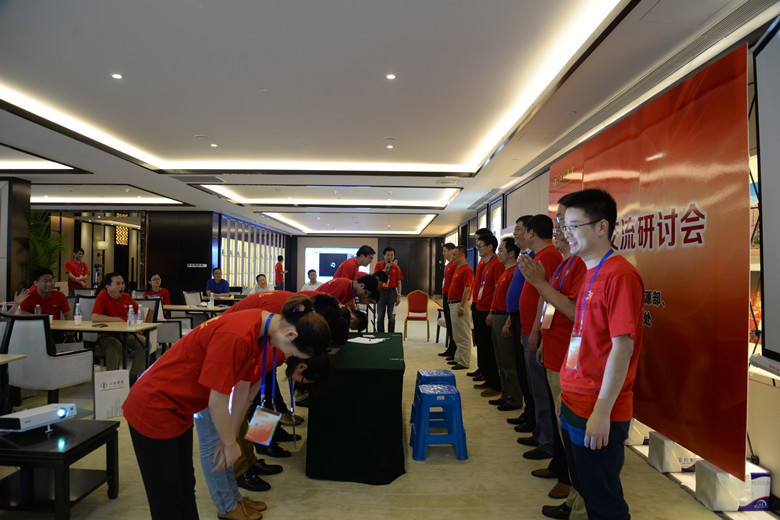 下午,大家還舉行了短暫的拓展活動,在簡單的游戲中悟出了深刻的成長道理。隨后,4個組各一男一女2名代表和1名部門負責人就如何拓展公司員工成長的通道和途徑分享了各自的想法和建議。陸董事長向表現優異的員工代表贈送了書籍。12名青年員工代表行正式拜師禮,拜12名老員工為師,師徒共同在青年員工成長目標導航圖上簽字,活動在《點一盞心燈給你》的音樂聲中圓滿結束。