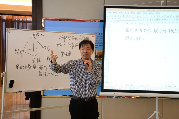 會議由華建地產董事長程杰主持。程總首先從調控政策、樓市供銷、土地市場等方面通過詳盡的數據向大家作了宏觀形勢分析,并對后市作了預測,對未來作了展望。地產常務副總徐剛就4個優質地塊和1個生態農莊項目向大家作了推介,與會人員興致盎然,各抒己見,圍繞宏觀形勢對推介項目闡述了自己的觀點和想法,他們紛紛表示,此次研討會搭建了項目交易的平臺,集思廣益,共謀發展,讓大家意識到新形勢下只有強強聯合,企業才能走得更遠。