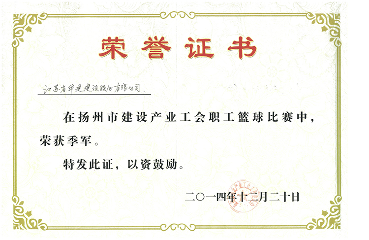 公司籃球隊獲市建設產業工會籃球賽季軍 時間:2014-12-22 4499 12月20日,在揚州市職業大學瘦西湖校區體育館舉辦的“揚州市建設產業工會籃球比賽”中,由總部機關、設計院和檢測中心職工組成的公司籃球隊努力拼搏、奮勇爭先,以兩勝一負的戰績榮獲比賽季軍。 建設產業工會田主席為公司籃球隊頒發獎狀