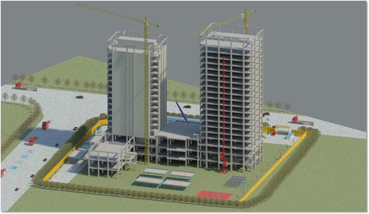 橫琴隆義廣場項目位于珠海橫琴自貿區,工程造價為16000萬元,建筑面積約60000平方米,由1棟17層和1棟20層的塔樓組成,最大高度為85.8米,合同工期730天。建成之后將成為橫琴島上的高檔酒店和寫字樓。該工程通過運用BIM技術,建立項目BIM設計模型,完成了多專業碰撞檢查、模型二次深化設計、凈高分析等工作。此外,公司在該項目施工中還基于高精度BIM施工模型做到了施工臨時場地布置、BIM樣板引路、機電管線綜合優化、鋁合金模板預拼裝、腳手架系統深化設計、動態可視化交底、施工進度計劃及造價控制等工作的優化管理,項目結合二維碼的協同管理云平臺,實現了“工廠預制加工”“掃碼組裝”“二維碼安全技術交底”“設備信息錄入”等智能化操作。