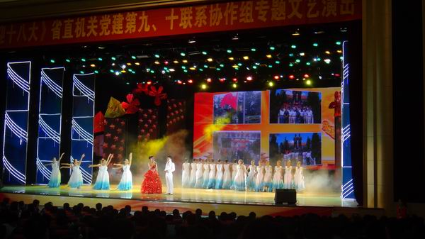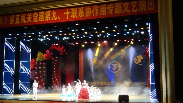群團黨旗紅 喜迎十八大 時間:2012-08-12 4319 8月10日晚8:00,群團黨旗紅、喜迎十八大,海南省直機關黨建第九、十聯系協作組專題文藝演出在海南省工商職業學院禮堂隆重舉行,江蘇省駐瓊建工企業黨委作為第十聯系協作組成員單位參與承辦贊助了此次晚會,并精心組織和選送了大型歌伴舞節目《陽光路上》參加演出,受到省直機關工委領導、評委和廣大觀眾的一致好評,達到了良好效果。江蘇省駐瓊建工企業黨委書記王宏率廣大黨員、干部、職工共27人出席觀看了晚會。