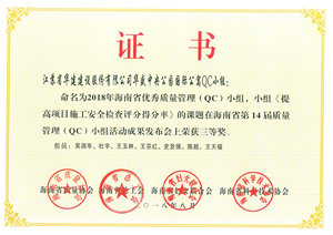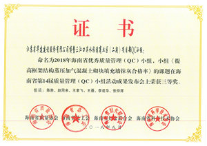 海南公司五項QC成果獲得省級表彰 時間:2018-09-03 3404 日前,海南省質量協會公布了2018年海南省“優秀質量管理(QC)小組”活動成果評比結果,海南分公司共有5項成果受到表彰。其中,海花島2#島三(一)期2-10-1地塊QC小組榮獲二等獎,博鰲三江口濱水旅游商業區(二期)項目部QC小組、三亞婦幼保健院整體搬遷(新址)建設項目QC小組、恒大海上帝景QC小組、華盛中央公園國際公寓QC小組榮獲三等獎。 (技術質量處)