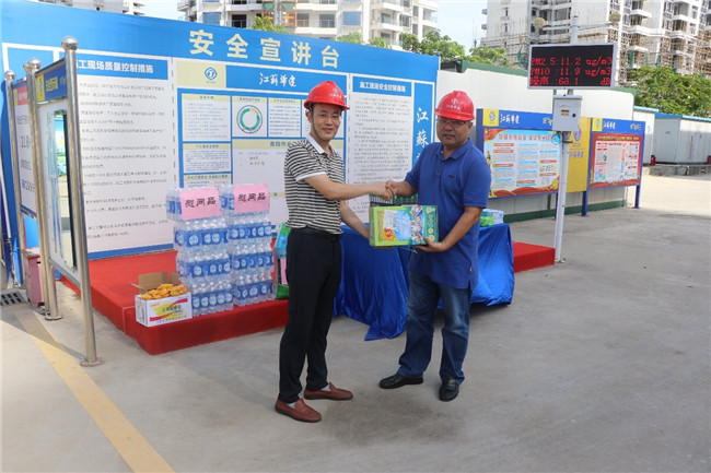 公司工會赴工地進行高溫慰問 時間:2019-06-11 2680 6月10日上午,海南分公司黨總支副書記、工會主席郁遠帶隊走訪慰問海口恒大·美麗沙項目部,檢查項目安全生產情況,并給奮戰在高溫、露天生產第一線的員工送去涼茶、綠豆、人丹等防暑用品,送去企業及工會組織的關懷。 在詳細詢問了工程推進情況和一線職工的工作、生活情況后,郁遠書記囑咐項目負責人要安排好施工現場人員的作息時間,做好降溫消暑保護措施。并叮囑一線的職工要注意人身與施工安全,合理安排工作時間,做到勞逸結合,確保高溫期的安全生產。(辦公室)