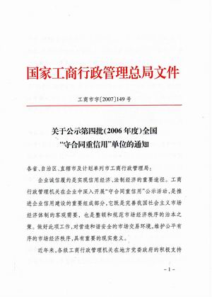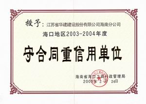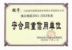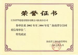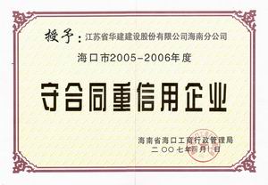 企業誠信榮譽 時間:2019-01-01 9041 2001-2002年度海口市守合同重信用 2003-2004年度海口市守合同重信用 2005-2006年度海口市守合同重信用 2002-2004年度海南省守合同重信用 2006年度全國守合同重信用1 2006年度全國守合同重信用2 2006年度全國守合同重信用3 2006年度全國守合同重信用4 2012年度海南省守合同重信用