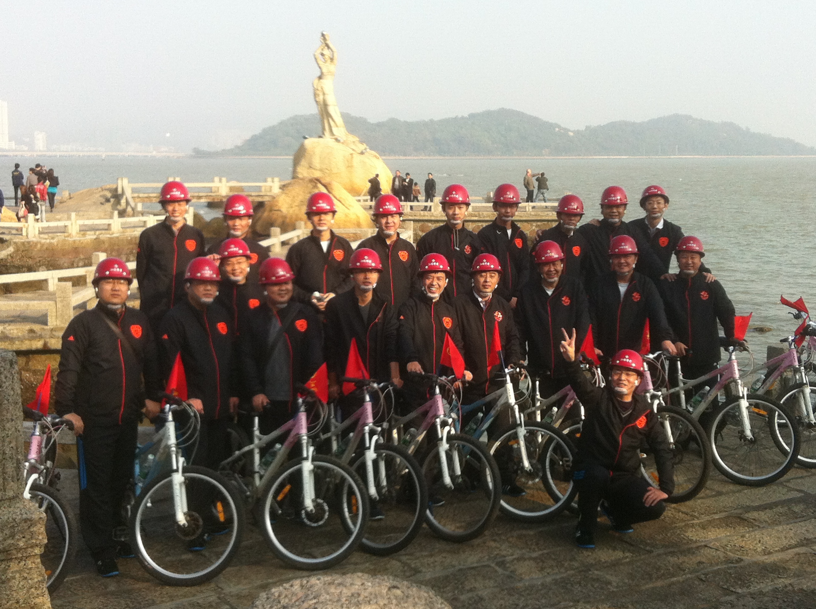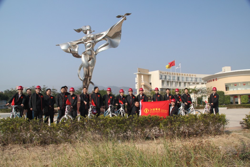 2012年1月1日上午9時(shí),珠海區(qū)域公司全體員工在公司經(jīng)理室的帶領(lǐng)下,統(tǒng)一著裝,頭戴印有江蘇華建標(biāo)識(shí)的安全頭盔,騎著統(tǒng)一插有江蘇華建小紅旗的自行車,沿著珠海海濱綠道開展騎自行車迎新年活動(dòng)。騎行的起點(diǎn)是珠海海濱浴場,終點(diǎn)是珠海淇澳島,來回全程56公里。騎行過程中,隊(duì)伍有序安全行進(jìn),引導(dǎo)車上醒目的江蘇華建大旗迎風(fēng)招展,每輛自行車前面的江蘇華建小紅旗也分外引人注目。繆國樞總經(jīng)理身先士卒,騎行在隊(duì)伍的最前面,無論是年近6旬的老員工,還是剛工作不久的新員工,個(gè)個(gè)爭先恐后,奮勇向前,江蘇華建這支特殊的“騎兵隊(duì)”在新年的第一天飛行在珠海的海濱綠道上,形成了一道亮麗的風(fēng)景線,引得許多路人和游客紛紛駐足觀望,許多攝影愛好者也紛紛舉起手中的相機(jī)爭相拍照。 這次元旦騎自行車活動(dòng)既是一次低碳環(huán)保生活的宣傳,也是一次江蘇華建員工良好精神風(fēng)貌的展現(xiàn),通過這次活動(dòng)既鍛煉了員工的體魄,更激發(fā)了員工們新的一年里奮發(fā)向上,團(tuán)結(jié)拼搏,奔向新未來的昂揚(yáng)斗志。