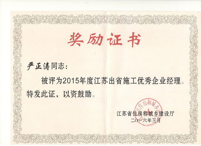 重慶分公司被表彰為“2015年度江蘇出省施工先進企業(yè)” 時間:2016-04-20 3171 近日,重慶分公司被江蘇省住房和城鄉(xiāng)建設(shè)廳表彰為“2015年度江蘇出省施工先進企業(yè)”,重慶分公司總經(jīng)理嚴正濤榮獲“2015年度江蘇出省施工優(yōu)秀企業(yè)經(jīng)理”稱號,樊晨亮被評為“2015年度出省施工優(yōu)秀黨務(wù)工作者”。