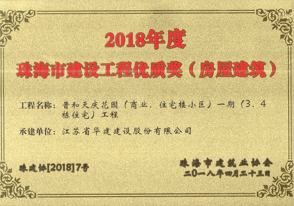 3月1日,珠海市建筑業(yè)協(xié)會(huì)第四屆五次會(huì)員大會(huì)在珠海德瀚大酒店隆重召開(kāi),會(huì)上對(duì)2018年度珠海市建筑業(yè)先進(jìn)單位、先進(jìn)個(gè)人、優(yōu)質(zhì)工程進(jìn)行了表彰。珠海區(qū)域公司獲評(píng)2018年度珠海市建筑業(yè)優(yōu)秀企業(yè),公司總經(jīng)理呂方達(dá)榮獲2018年度珠海市建筑業(yè)優(yōu)秀企業(yè)家稱號(hào),左兆金被表彰為優(yōu)秀項(xiàng)目經(jīng)理。此外,公司3個(gè)項(xiàng)目分獲表彰,晉和天慶花園一期工程獲評(píng)2018年度珠海市建設(shè)工程優(yōu)質(zhì)獎(jiǎng)(房屋建筑),橫琴隆義廣場(chǎng)、華策國(guó)際大廈被評(píng)為2018年度珠海市建設(shè)工程優(yōu)質(zhì)結(jié)構(gòu)獎(jiǎng)。