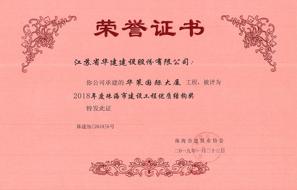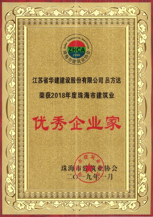 公司獲評(píng)2018年度珠海市建筑業(yè)優(yōu)秀企業(yè)