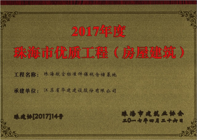 公司2項目獲評珠海市房屋建筑優質工程 時間:2017-05-16 4104 近日,珠海市建筑業協會發文公布2017年度珠海市優質工程名單,我司承建的珠海航空標準件保稅倉儲基地和丹田廣場二期的2個項目榜上有名。
