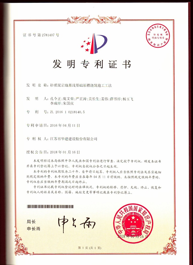 近日,從國家知識產(chǎn)權(quán)局傳來好消息,重慶分公司申報的技術(shù)成果《砂質(zhì)泥巖地基淺基礎(chǔ)原槽澆筑施工工法》獲得國家發(fā)明專利授權(quán)。該發(fā)明專利為重慶分公司獲得的首個國家發(fā)明專利。至此,珠海區(qū)域公司國家發(fā)明專利已達兩項。