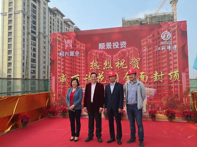 陽江威麗詩花園2期項目全面提前封頂 時間:2019-01-15 2717 2019年1月14日,第一項目部承擔施工任務的陽江威麗詩花園2期項目提前60天實現主體結構全面封頂。珠海利騰集團董事長黃金紅、總經理譚劍云,江蘇華建珠海區域公司總經理呂方達等參加封頂儀式。 威麗詩花園2期8~10棟住宅及地下室、12~15棟住宅及地下室、16棟住宅及地下室(含商業裙樓)、17~18棟住宅及地下室、19棟住宅及地下室(含商業裙樓)土建及水電安裝工程。該工程含商住樓共11棟,其中地下室建筑面積約34378平方米、地上建筑面積約127468平方米,總建筑面積約161847平方米。