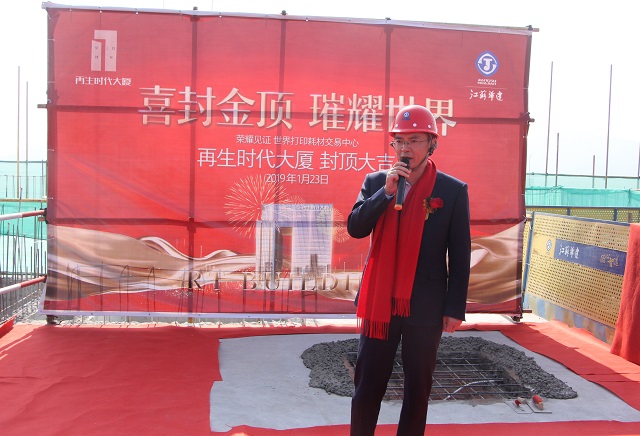 2019年1月23日,由珠海再生時代投資置業有限公司投資開發,我司施工總承包的珠海再生時代大廈項目舉行隆重的封頂儀式。珠海再生時代文化傳播有限公司董事長李廣連,珠海再生時代投資置業有限公司總經理張文中,江蘇華建珠海區域公司總經理呂方達等參加封頂儀式。