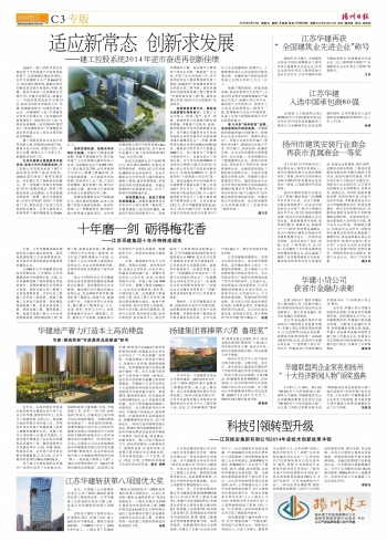 2月13日《揚州日報》C3整版刊發(fā)“揚州建工”專版,主要包括《適應新常態(tài)創(chuàng)新求發(fā)展——建工...