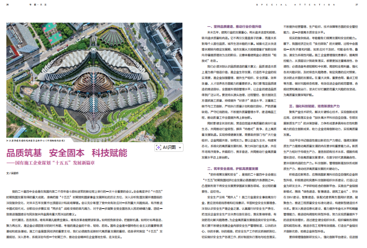 近日,江蘇華建黨委副書記、副董事長、總經理吳碧橋的署名文章《品質筑基安全固本科技賦能——國...