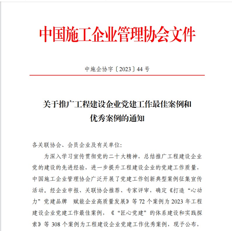 6月2日,中國(guó)施工管理企業(yè)協(xié)會(huì)發(fā)布2023年度全國(guó)工程建設(shè)企業(yè)黨建工作創(chuàng)新典型,江蘇華建申...