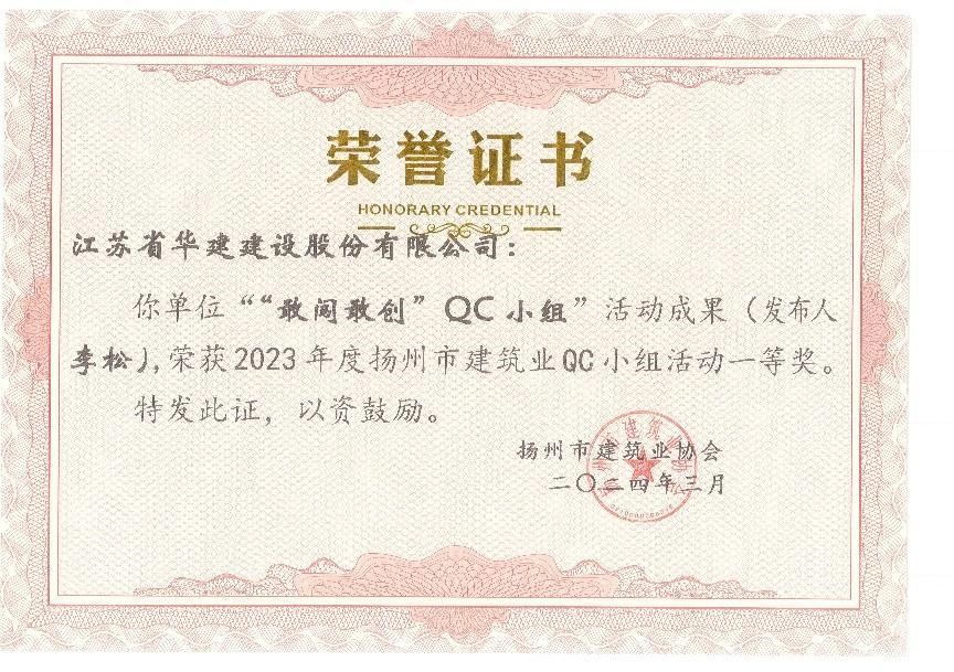 近日,揚(yáng)州市建筑業(yè)協(xié)會(huì)發(fā)布了2023年揚(yáng)州市建筑業(yè)QC小組活動(dòng)成果評(píng)價(jià)結(jié)果,公司13項(xiàng)QC...