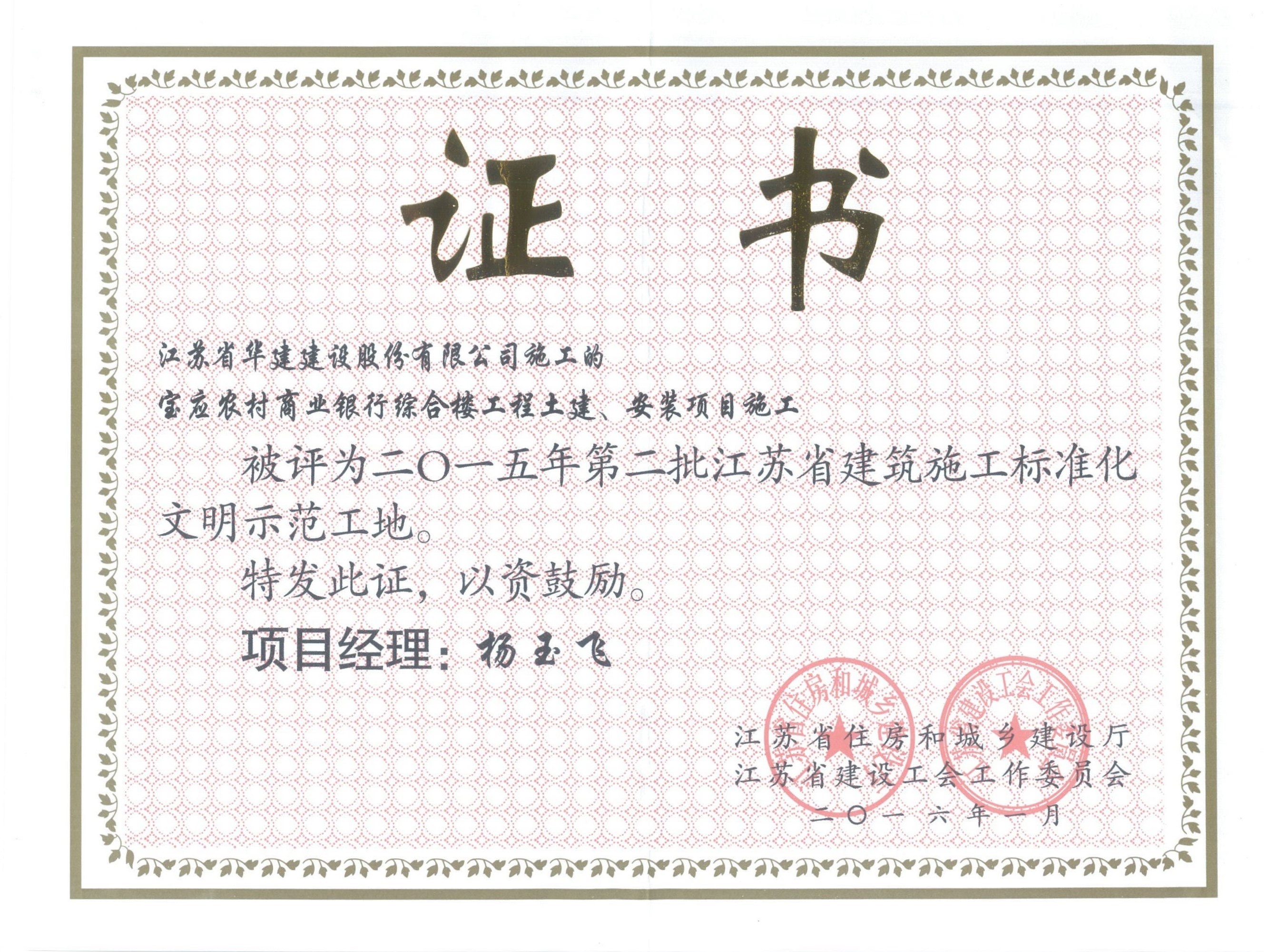 AAA級安全文明標(biāo)準(zhǔn)化工地,是由中國建筑業(yè)協(xié)會建筑安全與機(jī)械分會(原建筑安全分會)實(shí)施評選的獎項,是安全文明施工方面的最高獎項。 截止2020年末,江蘇華建共計10項工程入選此獎項。