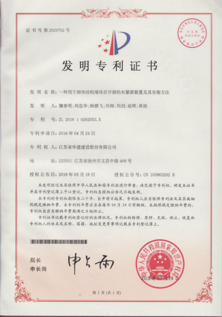日前,從國(guó)家知識(shí)產(chǎn)權(quán)局傳來喜訊,江蘇華建上海區(qū)域公司發(fā)布的《一種用于砌體結(jié)構(gòu)墻體后開洞的夾...