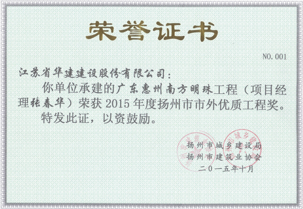 2015年揚(yáng)州市市外優(yōu)質(zhì)工程獎(jiǎng)2014年度市外瓊花杯-廣東惠州萬(wàn)麓湖一期2013年度市外瓊...