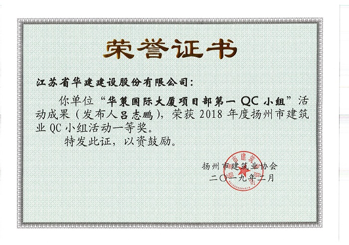 近期,揚(yáng)州市建筑行業(yè)協(xié)會公布了2018年度揚(yáng)州市工程建筑業(yè)優(yōu)秀QC小組活動成果評比結(jié)果,公...