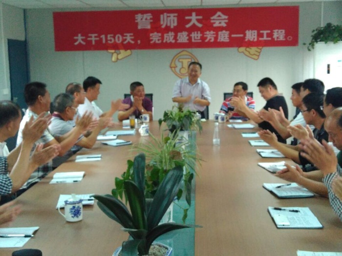 8月31日下午,盛世芳庭項目部在工地會議室舉行“大干150天誓師大會”,江蘇華建常務副總經...