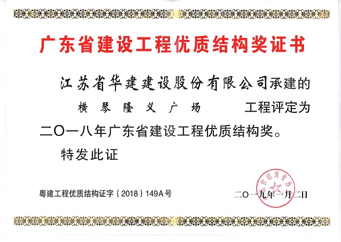 隆義廣場獲2018年廣東省建設(shè)工程優(yōu)質(zhì)結(jié)構(gòu)獎(jiǎng)