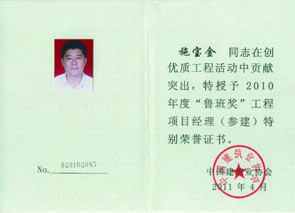 施寶金 時間:2012-04-10 8188 施寶金,高級工程師,現任深圳公司七處二工區常務副主任、項目經理。1996年到深圳參加工作,參與過國際商會中心、榮超經貿中心、江勝大廈、綠景紀元大廈等重點項目施工,獲“深圳市建筑業企業優秀項目經理”稱號,被授予“創魯班獎工程項目經理特別榮譽證書”。