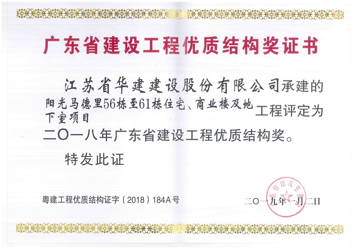 公司3個項目喜獲多項省級表彰 時間:2019-04-10 3850 近日,廣東省建筑業協會、廣東省建筑安全協會分別發文表彰了一批優質結構工程、綠色施工示范工程和安全文明工地,公司3個項目榮列榜單。其中,陽光馬德里、橫琴隆義廣場、華策國際大廈均被表彰為二〇一八年廣東省建設工程優質結構獎,華策國際大廈被授予廣東省建筑業綠色施工示范工程稱號,橫琴隆義廣場被評為2017年廣東省房屋市政工程安全生產文明施工示范工地。
